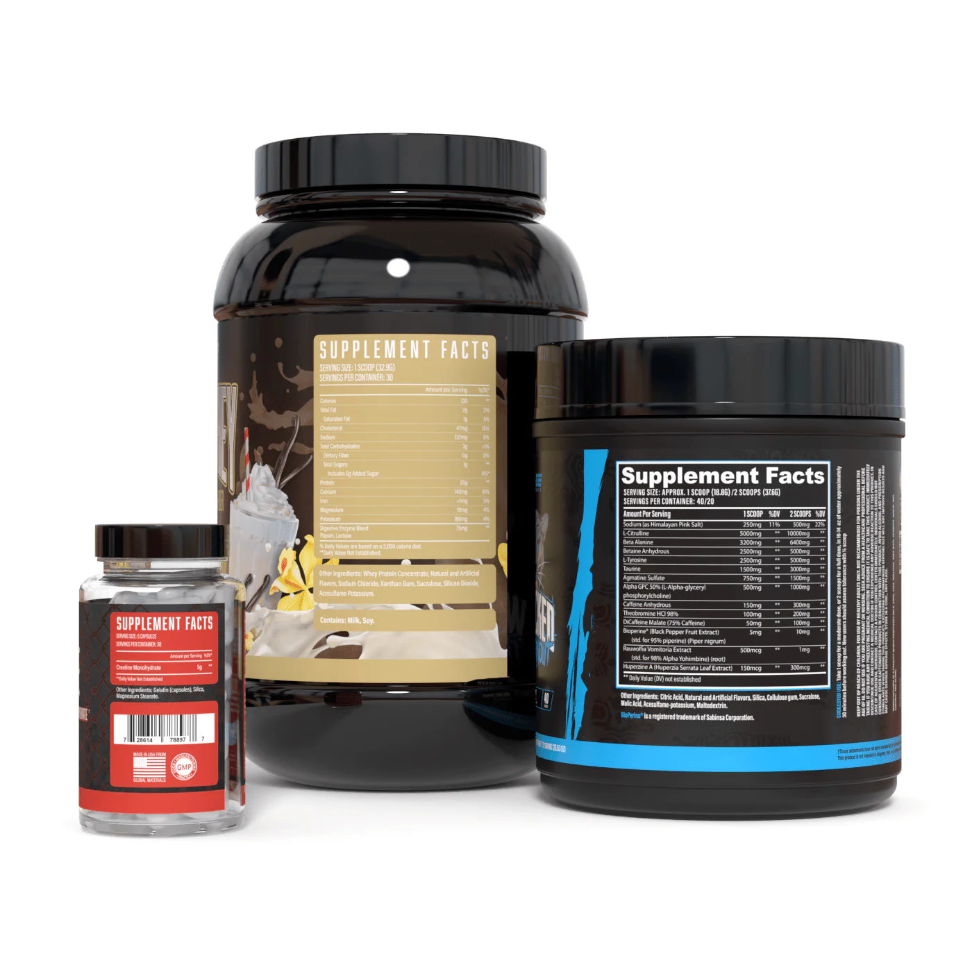Complementing Wrecked is Huge Whey - the definitive whey protein, delivering 25 grams per serving. Its blend ensures optimal muscle growth, swift recovery, and a tasteful protein fix.